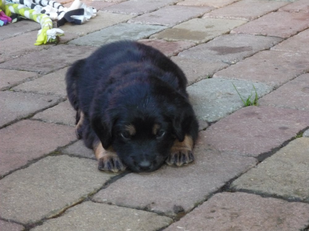 Abbey jenoznačně neživější z celého vrhu. Všichni už pochrupují a ona je pořád pokusuje. Ona je ta co vyvolává konflikty s ostatními. Ke žrádlu se protlačí nekomromisně mezi prvními.