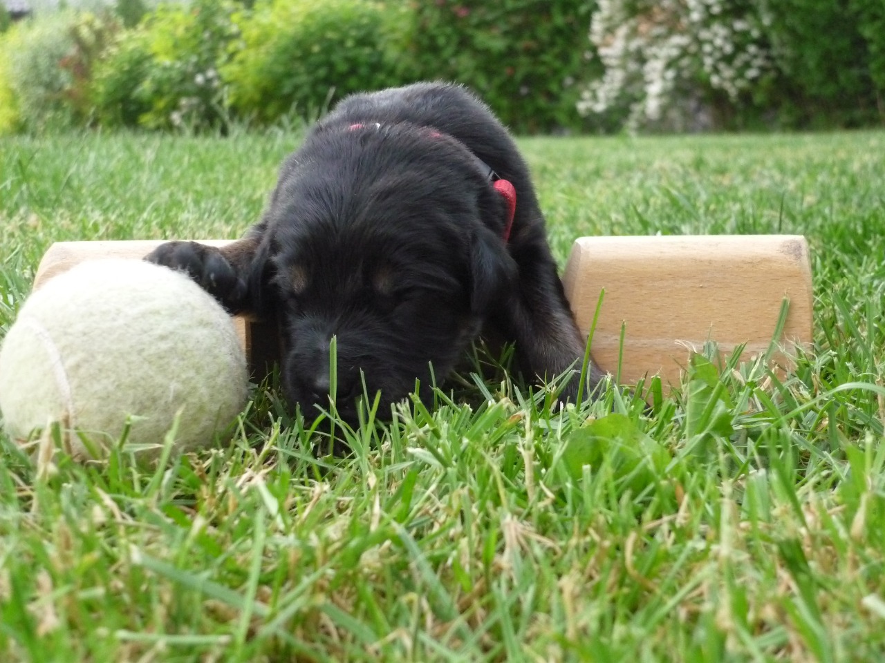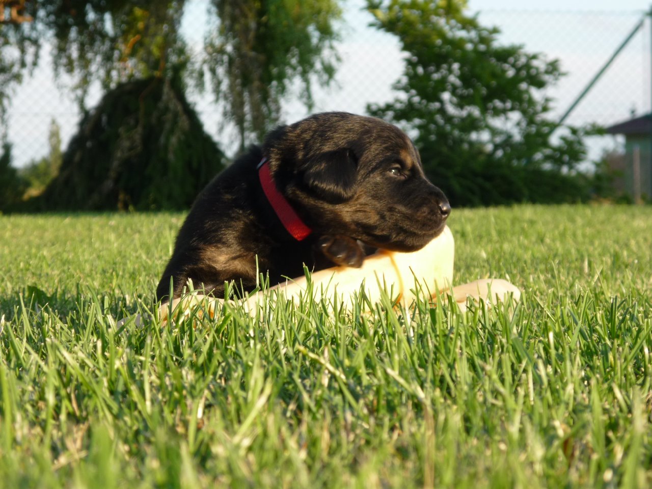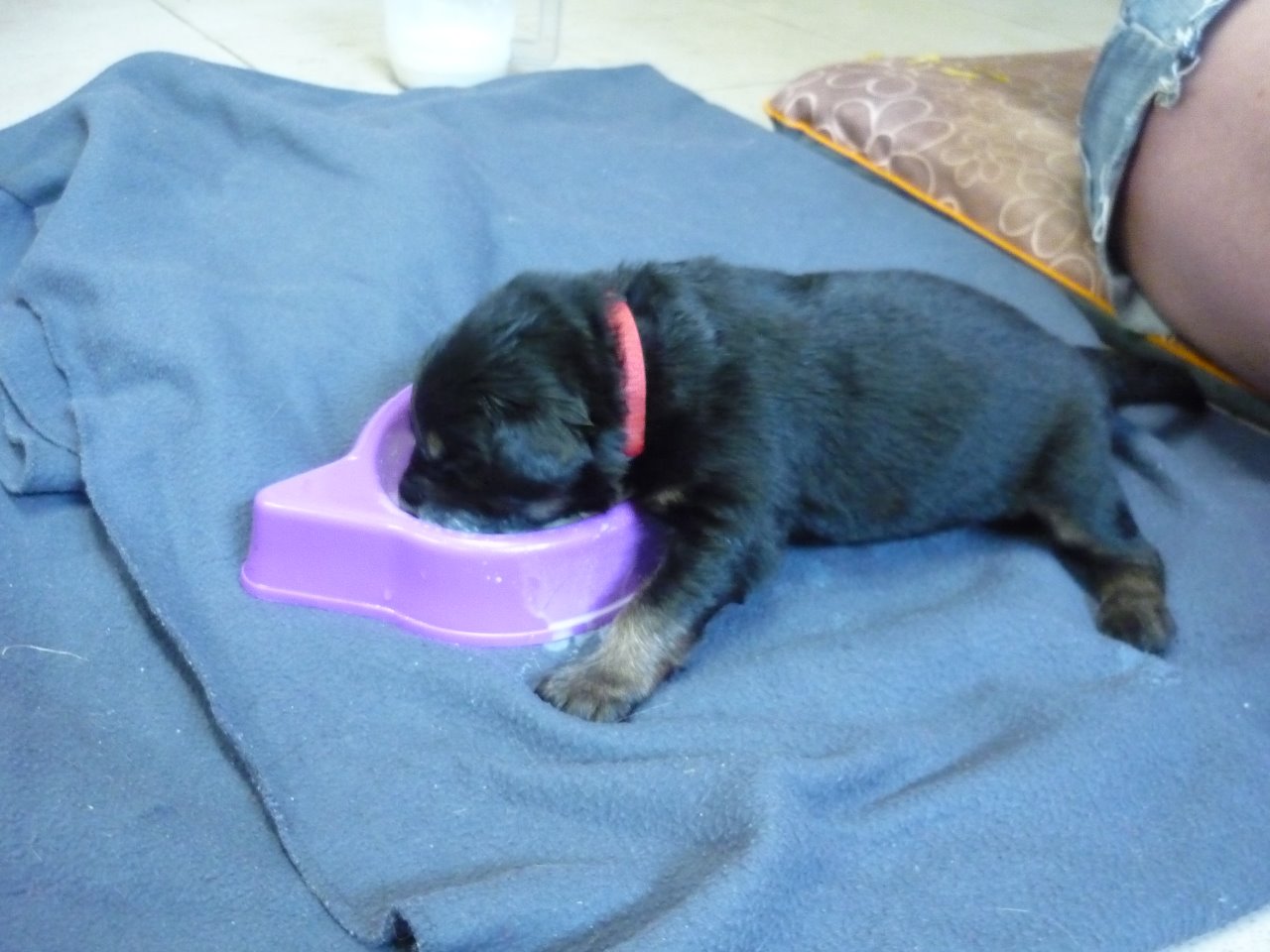 Abbey jenoznačně neživější z celého vrhu. Všichni už pochrupují a ona je pořád pokusuje. Ona je ta co vyvolává konflikty s ostatními. Ke žrádlu se protlačí nekomromisně mezi prvními.