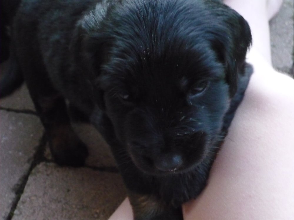 7. týdnů - váha 5,3 kg. Nejmenší Atia s tváří neviňátka je velký mazel, ale když se jí něco nelíbí, tak umí být pěkně vzteklá.