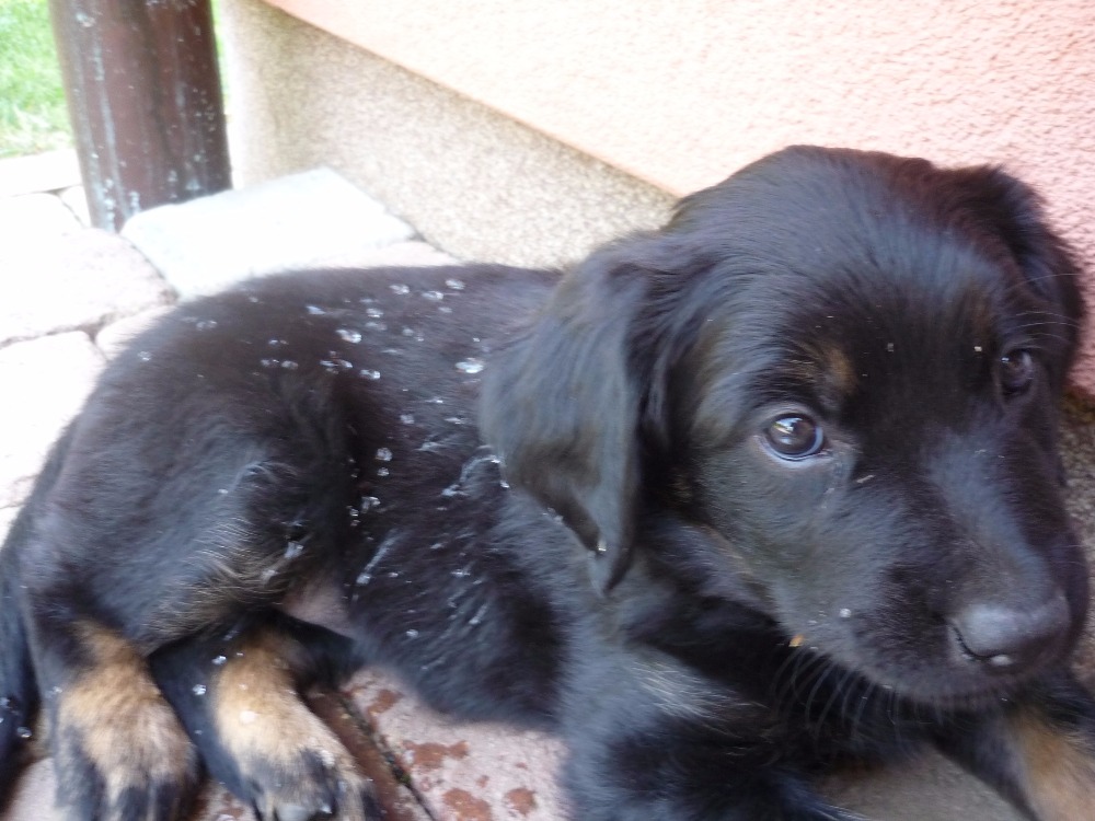 7. týdnů - váha 5,3 kg. Nejmenší Atia s tváří neviňátka je velký mazel, ale když se jí něco nelíbí, tak umí být pěkně vzteklá.