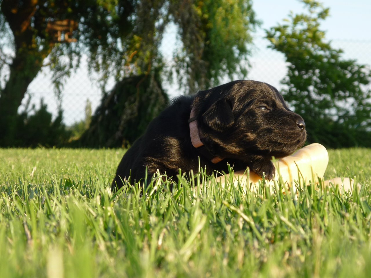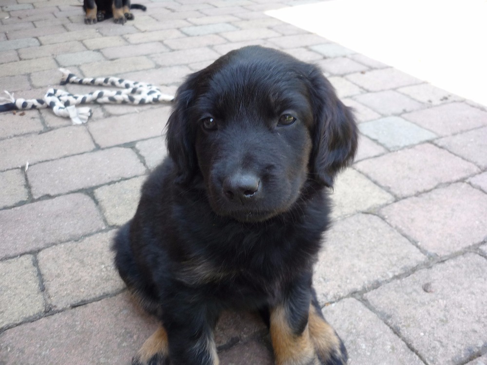 6. týden - váha 4,7 kg. Aimee a Adele - ségry k nerozeznání. I povahou jsou podobné - nejraději šmejdí v keřích živého plotu, kde je tolik zajímavých věcí nebo pošťuchují svého hodného bráchu Abua.